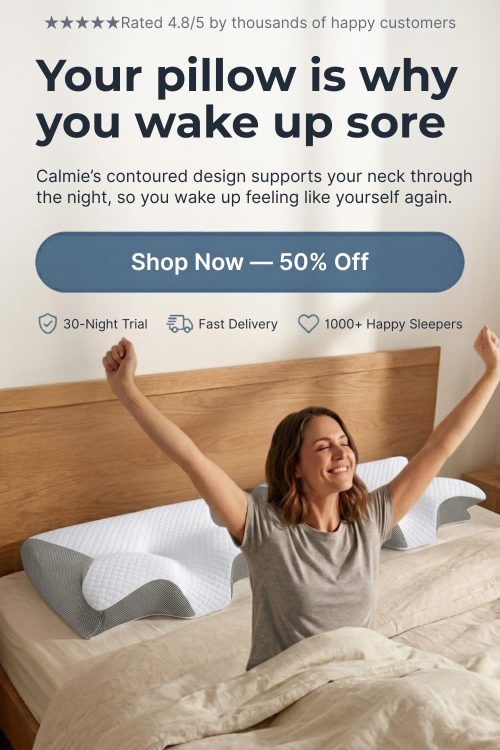 We're confident you'll love your Calmie pillow, but if not, our 30-night trial has you covered. Simply contact our customer service team, and we'll arrange a full refund and free pickup.